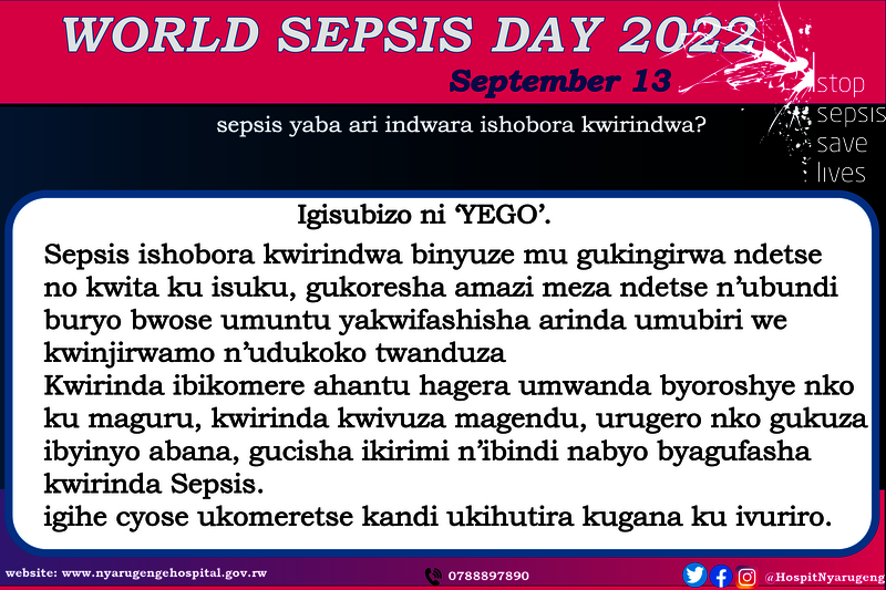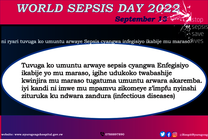 Ku Bitaro by’Akarere ka Nyarugenge, ushobora kuhabona Serivisi z’ubuvuzi bwa Sepsis ndetse n’izindi ndwara ziterwa n’udukoko twanduza. Niba ugaragaza bimwe mu bimenyetso by’iyi ndwara, ushobora kutugana muganga wacu w’inzobere mu buvuzi bw’indwara zo mu mubiri akagufasha. Ibuka kwitwaza ubwishingizi bw’ubuvuzi ndetse n’urwandiko rwa muganga (medical transfer) aho biri ngombwa, ubundi uhabwe ubuvuzi utararemba.