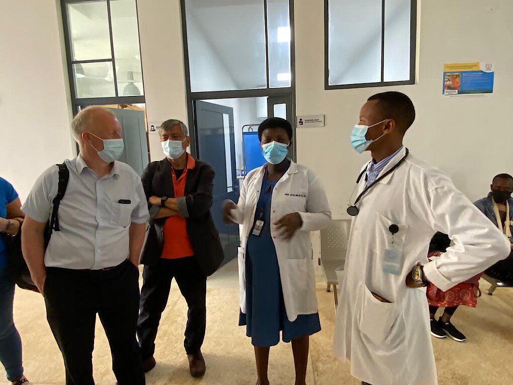 Dr Deborah ABIMANA, Nyarugenge District Hospital's Director General , giving visitors a tour of the Hospital and showing them facilities within